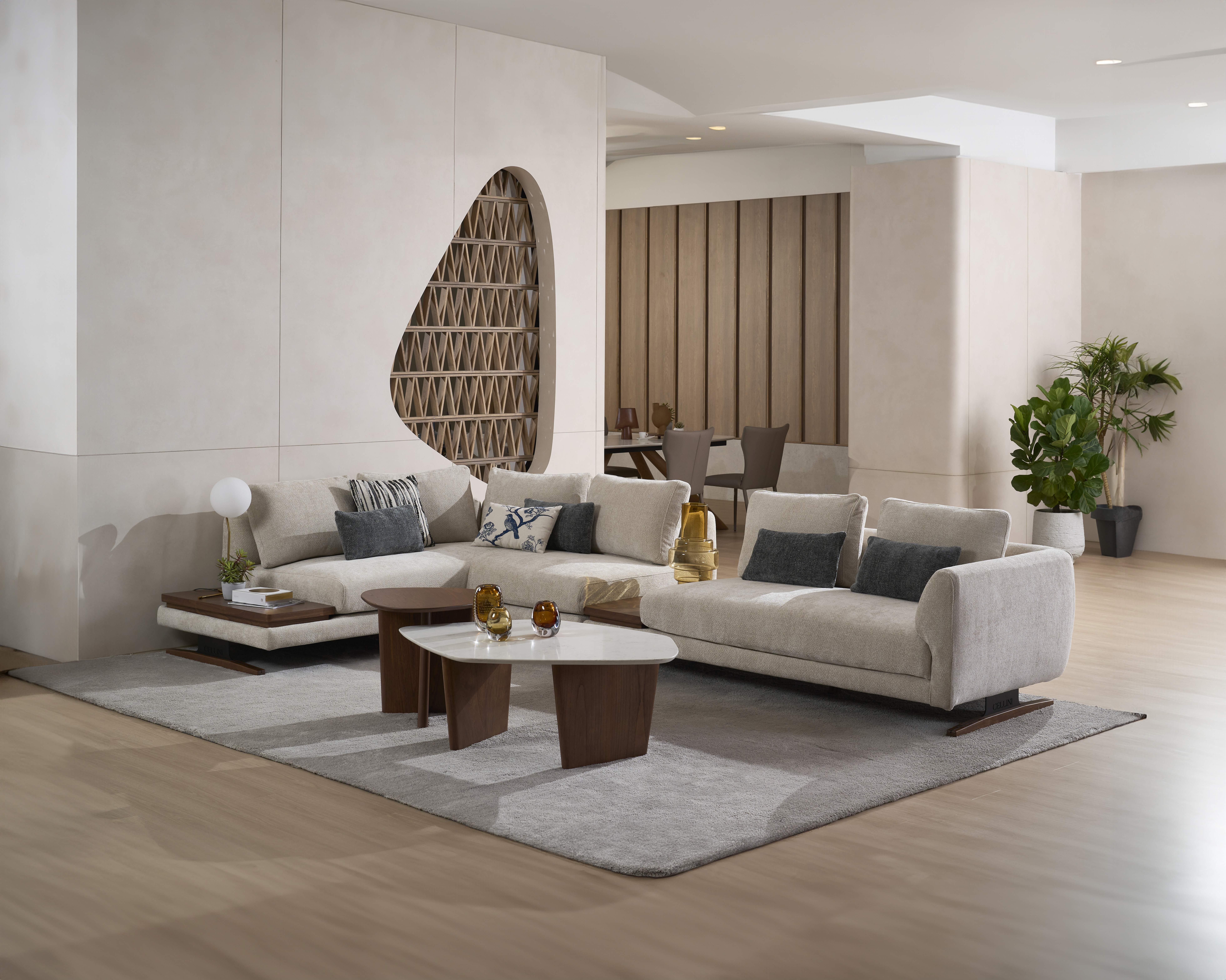 The uniqueness of the Evita Sofa lies in its flexible modular concept. Each seat can be combined with a wooden table that can be placed between the chairs or at the end of the sofa, adapting to the user's space and lifestyle needs. This feature not only enhances functionality but also creates a unique feel rarely found in conventional sofas.