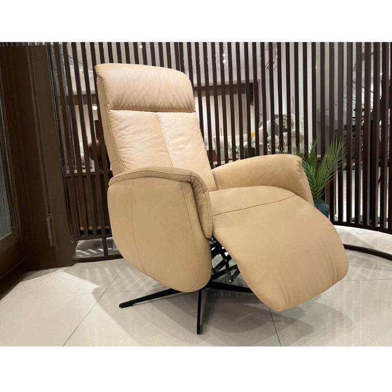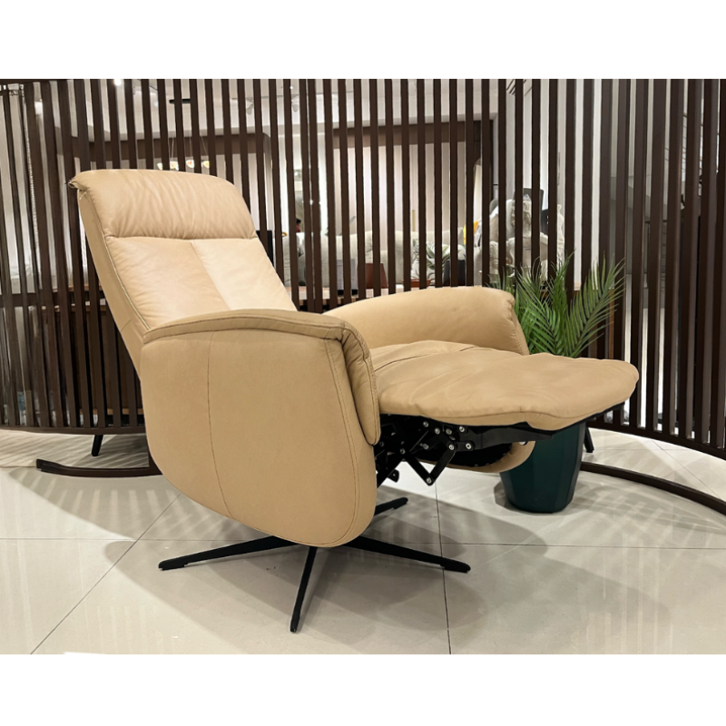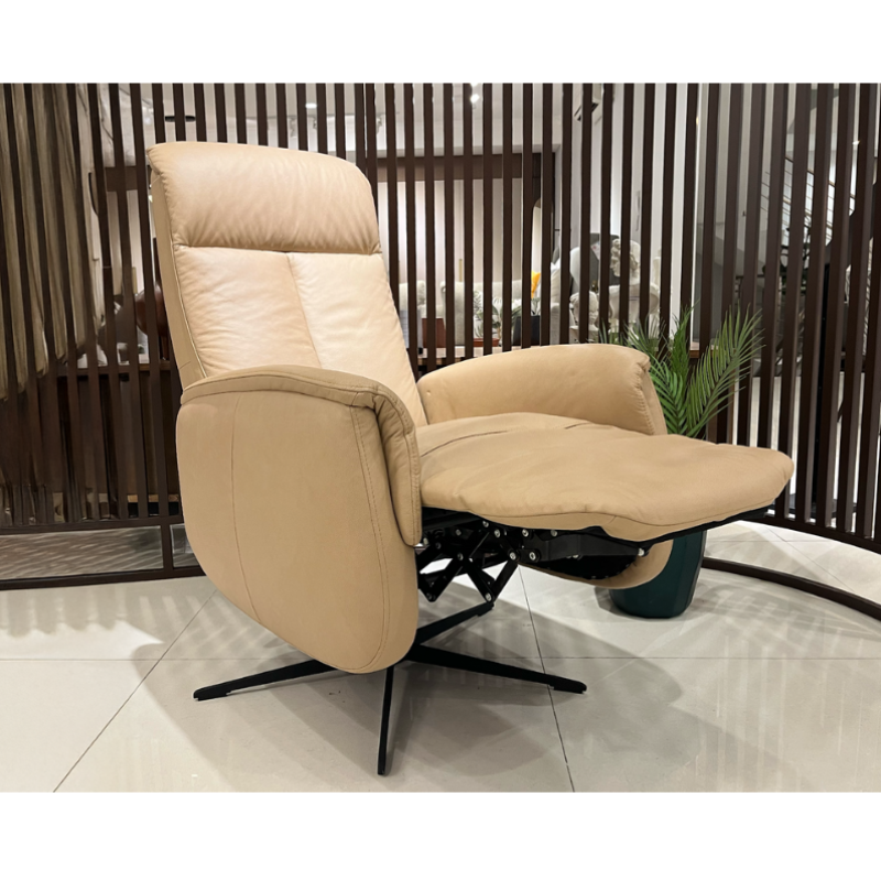 Supported by a sturdy star-shaped steel base with a black powder coat finish, the sofa combines stability with contemporary style. Easy and intuitive to operate, it is an excellent choice for those seeking a comfortable, practical, and stylish leather recliner sofa for modern living spaces.