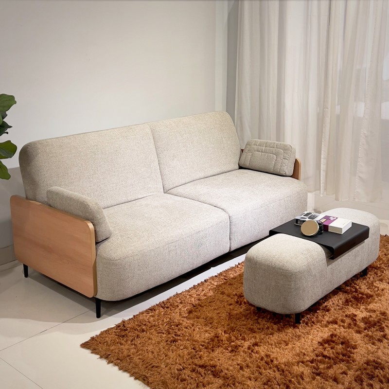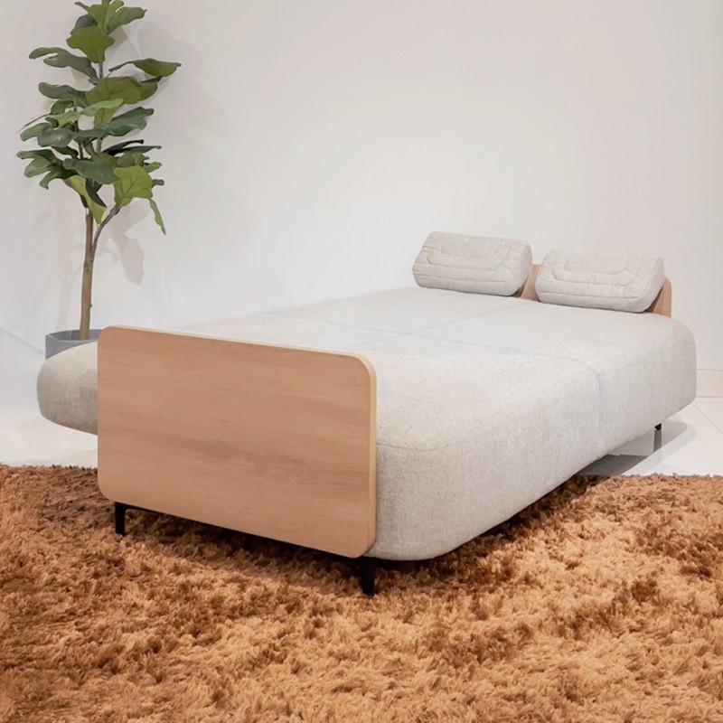 Equipped with a simple rachet mechanism, the sofa offers three adjustable positions: Sofa, Recline, and Bed. The recline mode provides a relaxed posture for reading or short naps, and when fully opened into bed mode, the sleeping area is equivalent to a Jakarta Super Single—comfortable even for someone up to 1.8m tall.