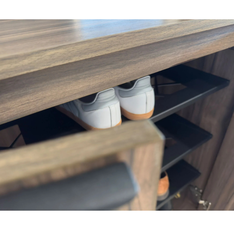 Rak Penyimpanan Multifungsi Nero adalah solusi cerdas untuk mengatasi barang-barang yang sering berantakan. Dirancang untuk hunian modern, kabinet ramping ini membantu Anda menyimpan sepatu, kunci, surat, dan berbagai kebutuhan lainnya dalam satu area yang rapi. Kabinet bagian atas dan rak terbuka di bagian bawah memaksimalkan penggunaan ruang vertikal, sementara gagang melengkung bergelombang memberikan sentuhan stylish. Dilengkapi juga dengan aksesori penyimpanan ber-rel untuk barang-barang kecil. Cocok ditempatkan di lorong maupun area pintu masuk, Nero menghadirkan fungsi maksimal tanpa memakan banyak ruang.