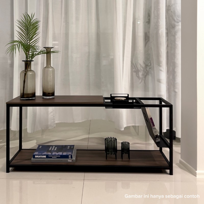 IDR 4.800.000 Harga Retail IDR 7.200.000Meja Kopi dengan Finishing Walnut dan Kaki Baja
