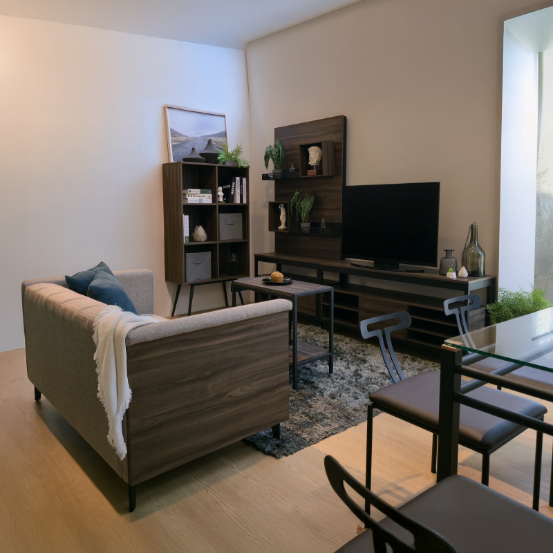 Terdiri dari sofa berdesain ringkas dengan kenyamanan optimal, TV console multifungsi, dan coffee table serbaguna, set ini menjadi solusi lengkap untuk gaya hidup modern di hunian compact.