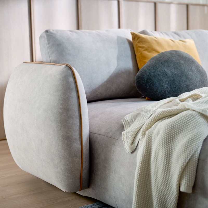Upholstered in soft, full fabric with synthetic leather piping, the details feel thoughtful and trendy. The seat cushions are made with individual pocketed springs and high-resilient foam, which means they bounce back and stay comfy, even after long hours of lounging.