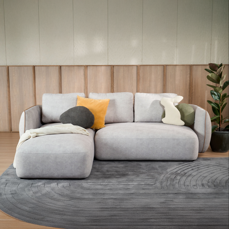IDR 18.999.000 Retail Price IDR 40.389.000Truso Fabric L-shaped Sofa with Reclining Backrest and Adjustable Armrests
