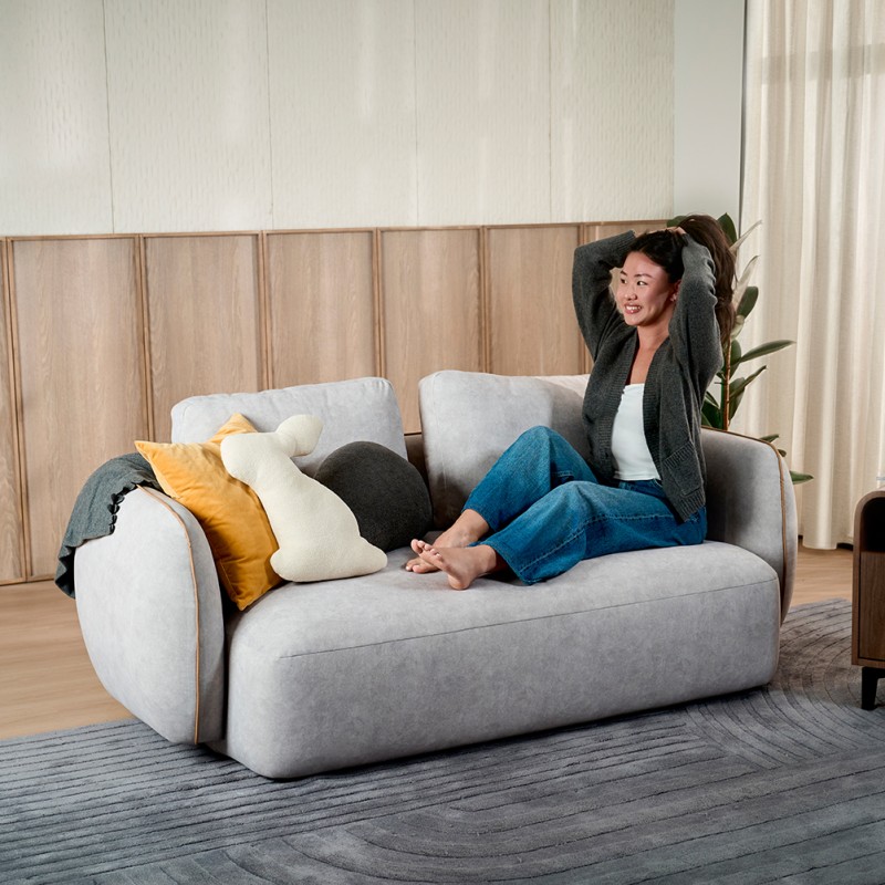 Bagian dudukan dibuat menggunakan webbing, pegas pocket individual, serta busa high-resilient yang memberikan kenyamanan optimal dan daya tahan jangka panjang. Sementara itu, sandaran punggung berisi loose fiber yang terasa lembut dan suportif, cocok untuk bersantai setiap hari.