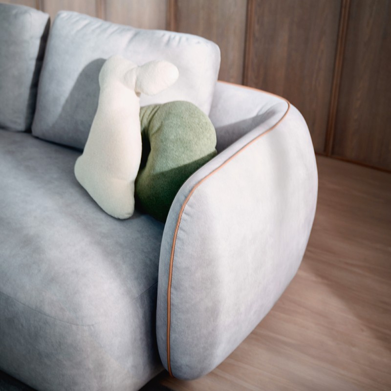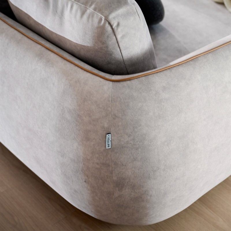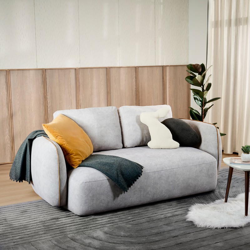 Rasakan kenyamanan premium dengan sofa kain elegan ini, yang dirancang dengan garis-garis lembut dan bentuk organik untuk tampilan modern yang menawan. Seluruh permukaan sofa dilapisi kain berkualitas tinggi, dilengkapi aksen piping kulit sintetis pada sandaran tangan untuk sentuhan detail yang lebih stylish.