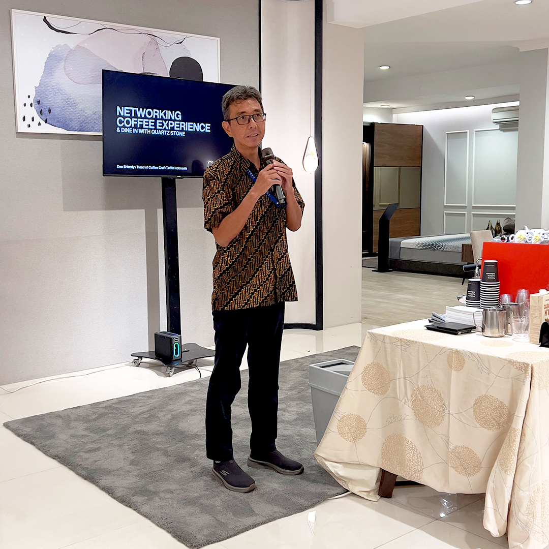 Selain pengalaman meracik kopi, acara ini juga memperkenalkan keunggulan Quartz Stone yang digunakan pada meja makan koleksi Cellini. Material ini memadukan kekuatan alami dan keindahan modern, menjadikannya pilihan ideal untuk ruang makan masa kini.